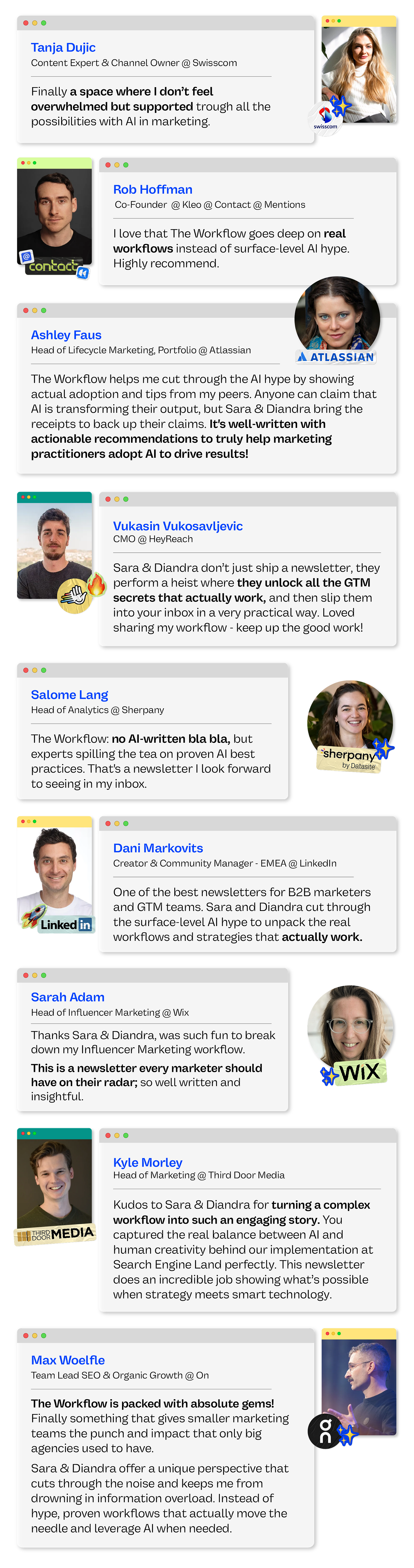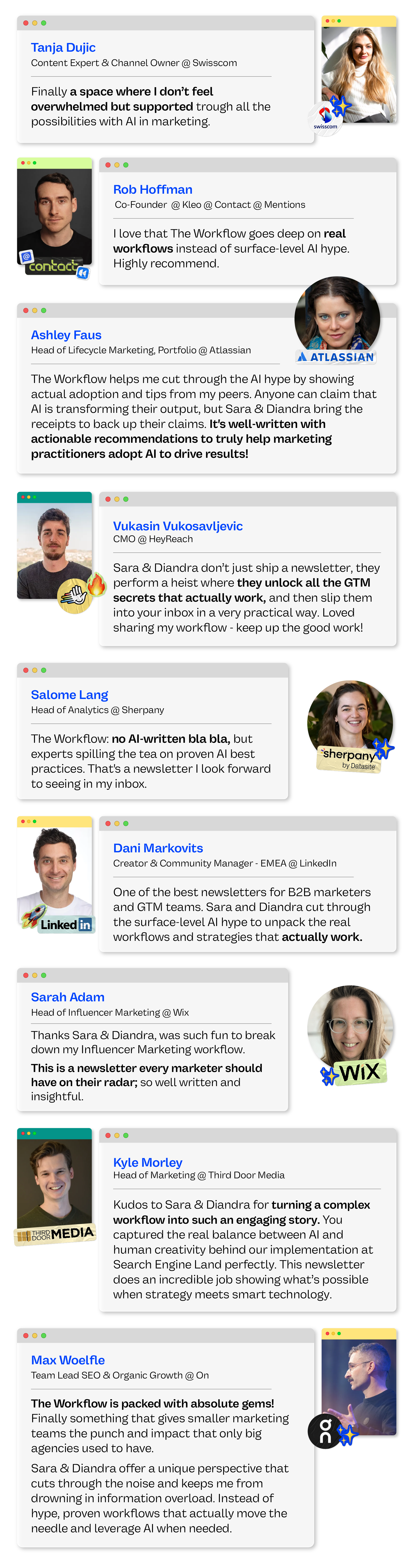 AI workflows for marketing and GTM from the best in class. Practical, tested, and hype-free.